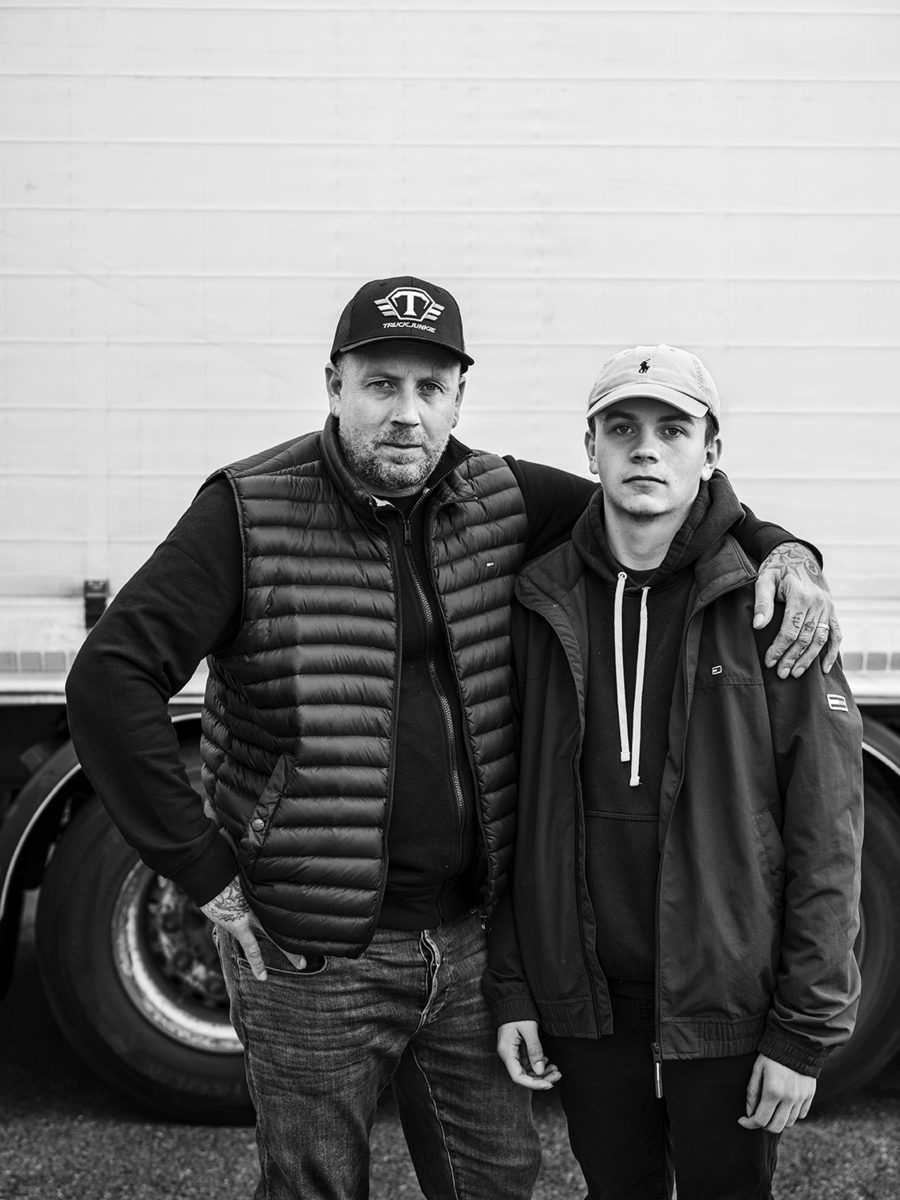Chauffeur depuis 2009 Gaëtan Broucke, 38 ans, est accompagné de son fils Corentin âgé de 16 ans, en stage pour sa 2ème année en CAP chauffeur routier. Il effectue 6 jours par semaine, soit environ 210 heures par mois, la même ligne régulière entre la Bretagne et le sud de la France. © Jean- François Joly / Grande Commande Photojournalisme