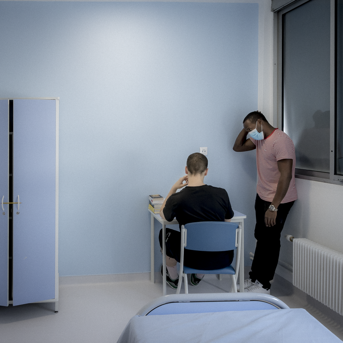 A la fin du temps calme les infirmiers viennent chercher les jeunes dans leur chambre. Cela peut être l’occasion d’un échange puis les chambres sont refermées par les infirmiers. ©Florence Levillain / Grande Commande Photojournalisme