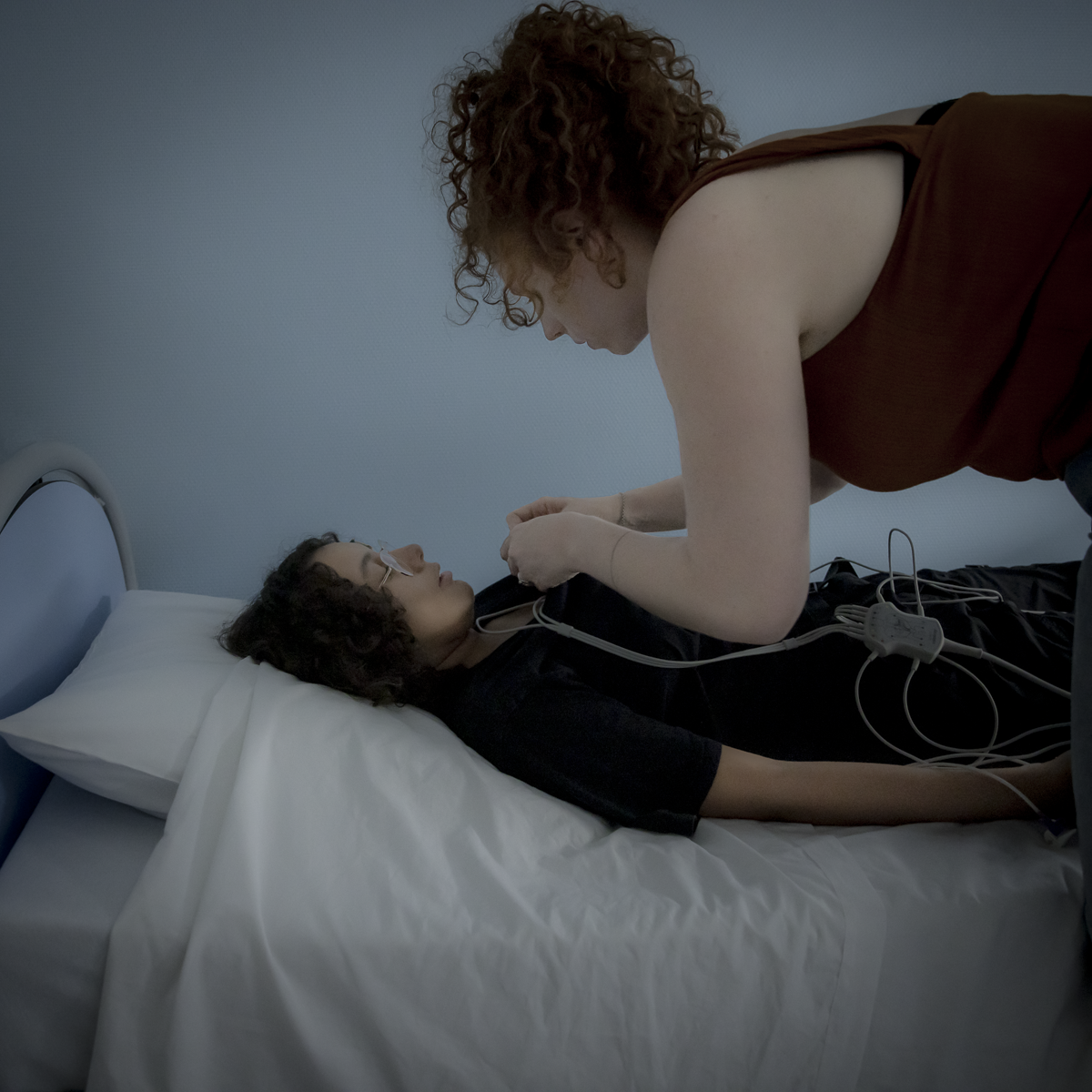 Une infirmière pose un électrocardiogramme. ©Florence Levillain / Grande Commande Photojournalisme