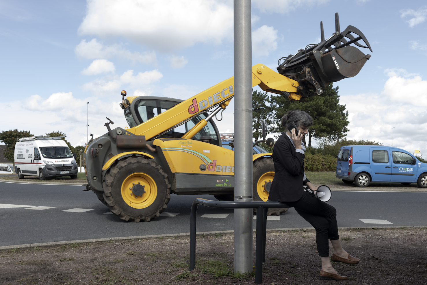 Stéphanie Maubé, la veille de l’ouverture de la foire Sainte-Croix de Lessay, l’un des plus importants événements agricoles en France. Elle tient encore à la main le mégaphone avec lequel elle a rappelé à l’ordre les forains pour qu’ils paient leur emplacement. © Frédéric Migeon - Hans Lucas / Grande commande photojournalisme