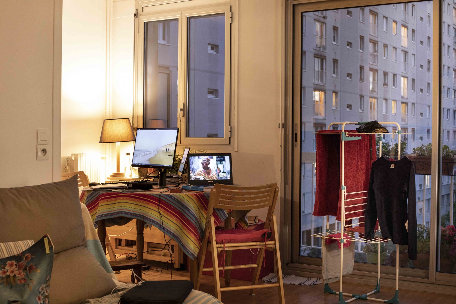La table à manger entre le coin cuisine et salon est désormais également un poste de travail. ©Marta Nascimento / Grande Commande Photojournalisme