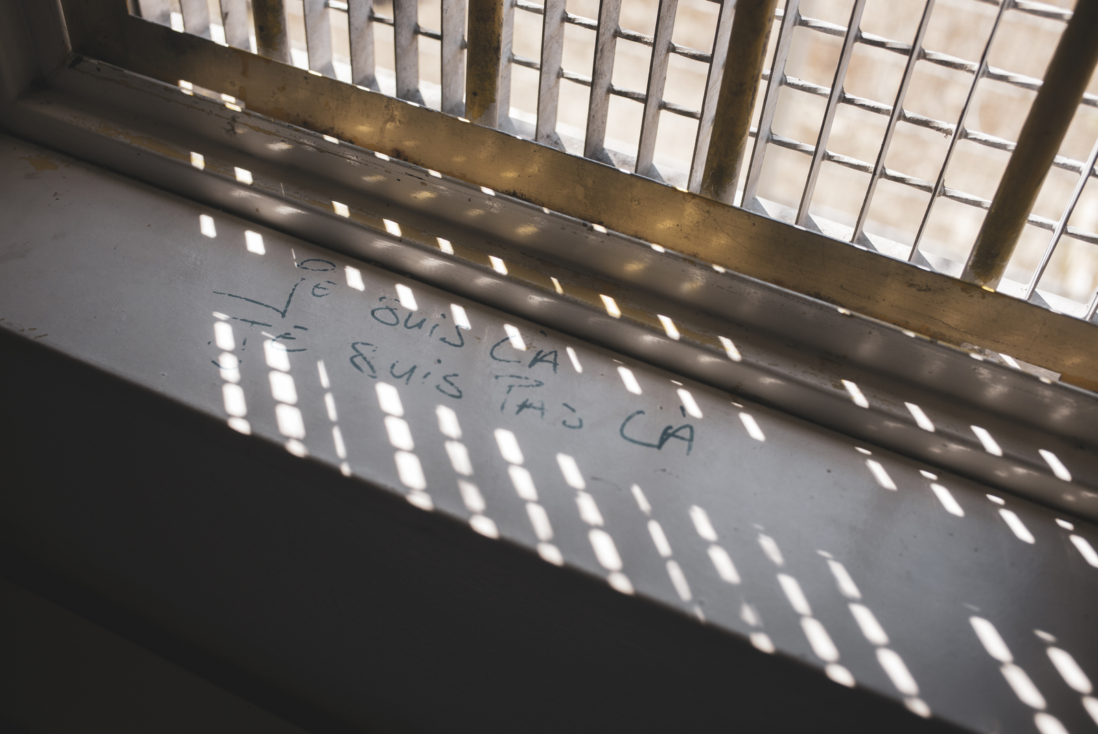 Prison de Salon-de-Provence. Graffiti au bord d’une fenêtre de la bibliothèque. ©Guillaume Binet - MYOP / Grande commande photojournalisme