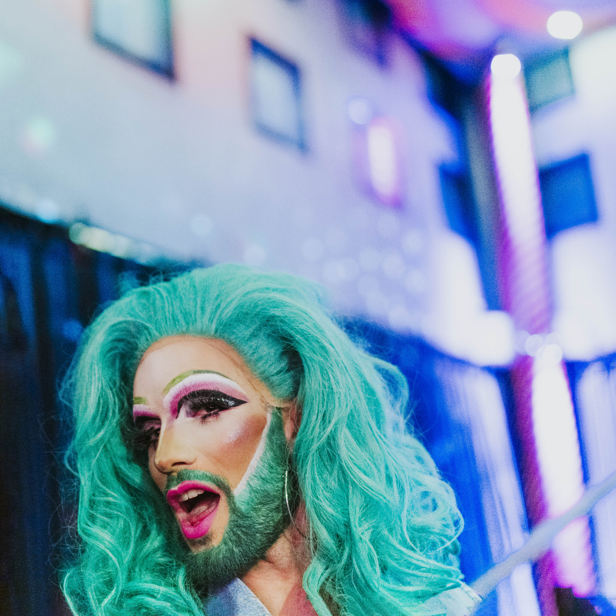 « Quand on est en drag, on attire forcément l’attention. Mon personnage de drag est devenu en quelque sorte un médium, comme un porte-voix, pour me faire entendre et faire résonner des discours. » Clémence Trü est une des drag queen qui a animé la tombola de soutien au Planning Familial, organisée par le média communautaire-associatif Friction Magazine à la Folie, un bar/boîte du nord de Paris. Cet événement aura permis à l’association de reverser 5 115€ au Planning Familial, victime de campagnes de dénigrement venues de l’extrême droite. Cet argent permettra au Planning de continuer de proposer ses services à toustes celles et ceux qui en ont besoin, sans discrimination. Parce que les subventions se font toujours plus rares et les attaques de l’extrême droite plus fréquentes. En l’occurrence, en 2022, une affiche du Planning familial montrant un homme enceint a lancé une polémique transphobe, reprise par de nombreux journaux et activistes liées à la mouvance TERF (Trans-Exclusionary Radical Feminist, soit un féministe radicale excluant les personnes trans des luttes féministes). Les drag queens ont vu leur popularité exploser en France en 2022 avec l’arrivée du programme Rupaul Drag Race à la télévision. En janvier 2023, des lectures de contes pour enfants par des drag queens à Toulouse ont fait l’objet d’une demande d’interdiction de la part d’un parti d’extrême droite. © Gaelle Matata / Grande Commande Photojournalisme