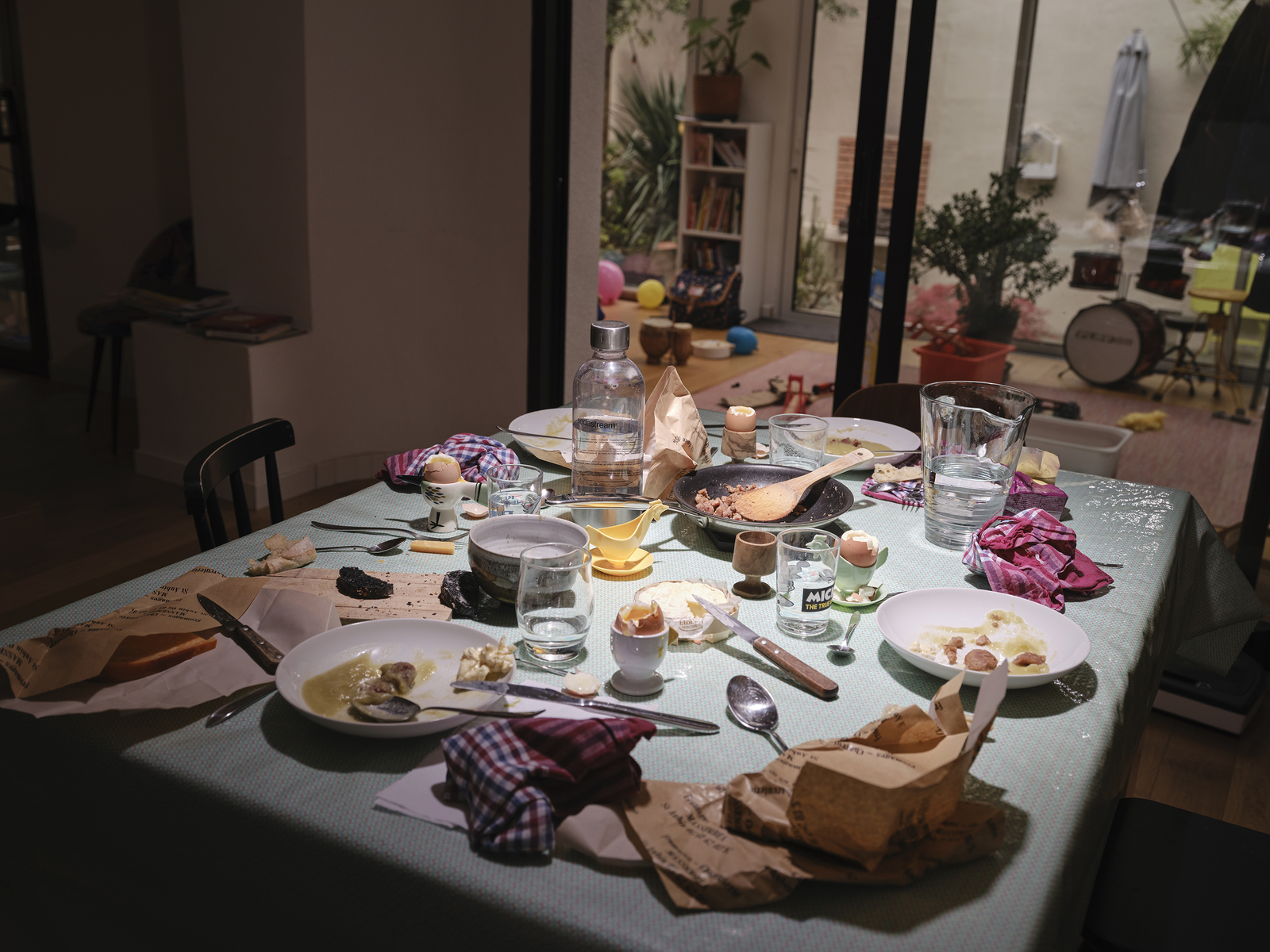 Aurélie et Jean-Gabriel, 41ans Vivent et travaillent à Toulouse avec leurs enfants Charlotte 7 ans et Emilien 3 ans. La famille se réunit autour de la table tous les soirs de la semaine et le week-end. Les repas de midi sont pris à l’extérieur pour les enfants et les parents pendant la semaine. C’est Aurélie qui cuisine qui fait les courses au marché. Jean Gabriel s’occupe de l’épicerie. La famille prête une attention particulière à notre situation écologique en privilégiant le «local» et les petits producteurs. Aurélie fait donc ses courses une fois par semaine pour ce qui est des légumes au marché de producteurs de Saint-Aubin à Toulouse. Pour la viande, le fromage et le poisson, elle privilégie les petits commerces aux alentours. La viande et le poisson font leur apparition dans les assiettes le week-end. C’est comme le dit Aurélie «la famille fromage». Ils en mangent souvent le soir accompagné de légumes ou de féculents. Le budget mensuel est aux environs de 250 € hors extra et réajustement. Famille de musiciens, le rituel, le repas se fait autour de la table en musique et sans écran. Les diverses crises ont poussé la famille à être encore plus attentif à ce qu’ils mangent et à privilégier le fait maison. © Laurent Moynat / Grande commande photojournalisme