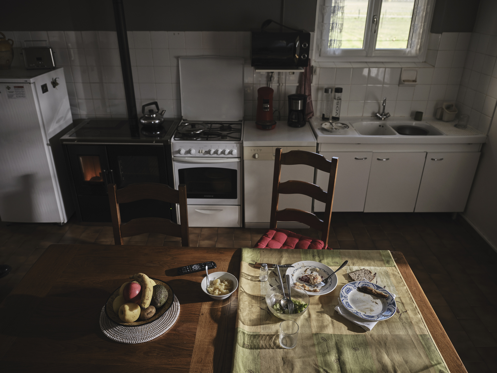 Odile 83 ans, vit dans les vergers de pommiers à Bio dans le Tarn-et-Garonne. Elle vit seule dans sa ferme depuis le décès de son mari. Ses journées sont rythmées par 3 repas, et commence par le petit déjeuner qu’elle adore avec ses tartines grillées de confiture accompagnées de noix et d’amandes. A midi c’est le gros repas de la journée, elle mange de la viande avec un petit faible pour la souris d’agneau, le vendredi c’est du poisson. C’est accompagné d’une salade et de légumes de son potager. Le soir son repas est plus léger, une betterave cuite au four et un petit potage, elle fait sa compote chaque jour car elle ne voit pas pourquoi « tu achèterais des desserts en habitant au milieu des pommiers ». Quand elle va faire ses courses elle ne regarde pas le porte-monnaie, elle achète ce qu’il lui fait plaisir. © Laurent Moynat / Grande commande photojournalisme