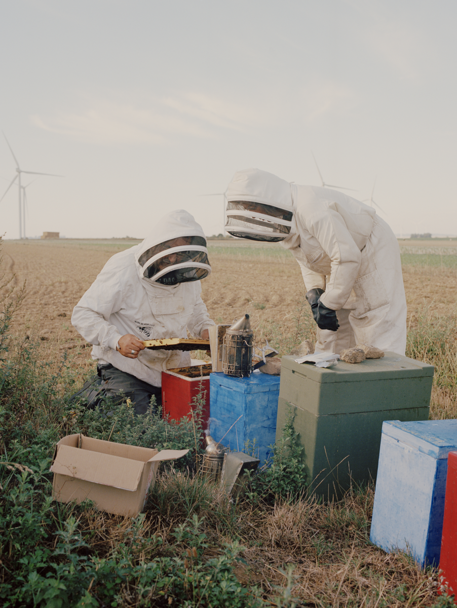 Patrice et Vanessa dans leur rucher. ©Margaux Senlis / Grande commande photojournalisme