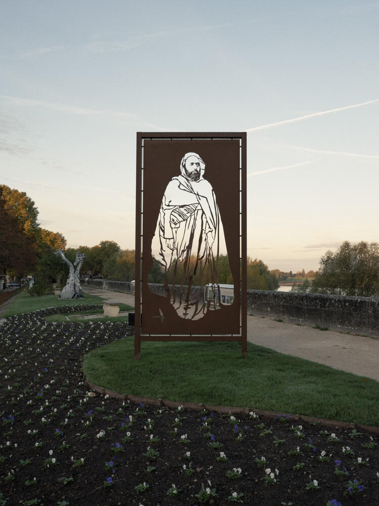 Sculpture de l'émir Abdelkader à Amboise. L'émir Abdelkader est un héro de la résistance algérienne à l'invasion française et fut emprisonné avec sa suite au château d'Amboise. © Rebecca Topakian / Grande commande photojournalisme