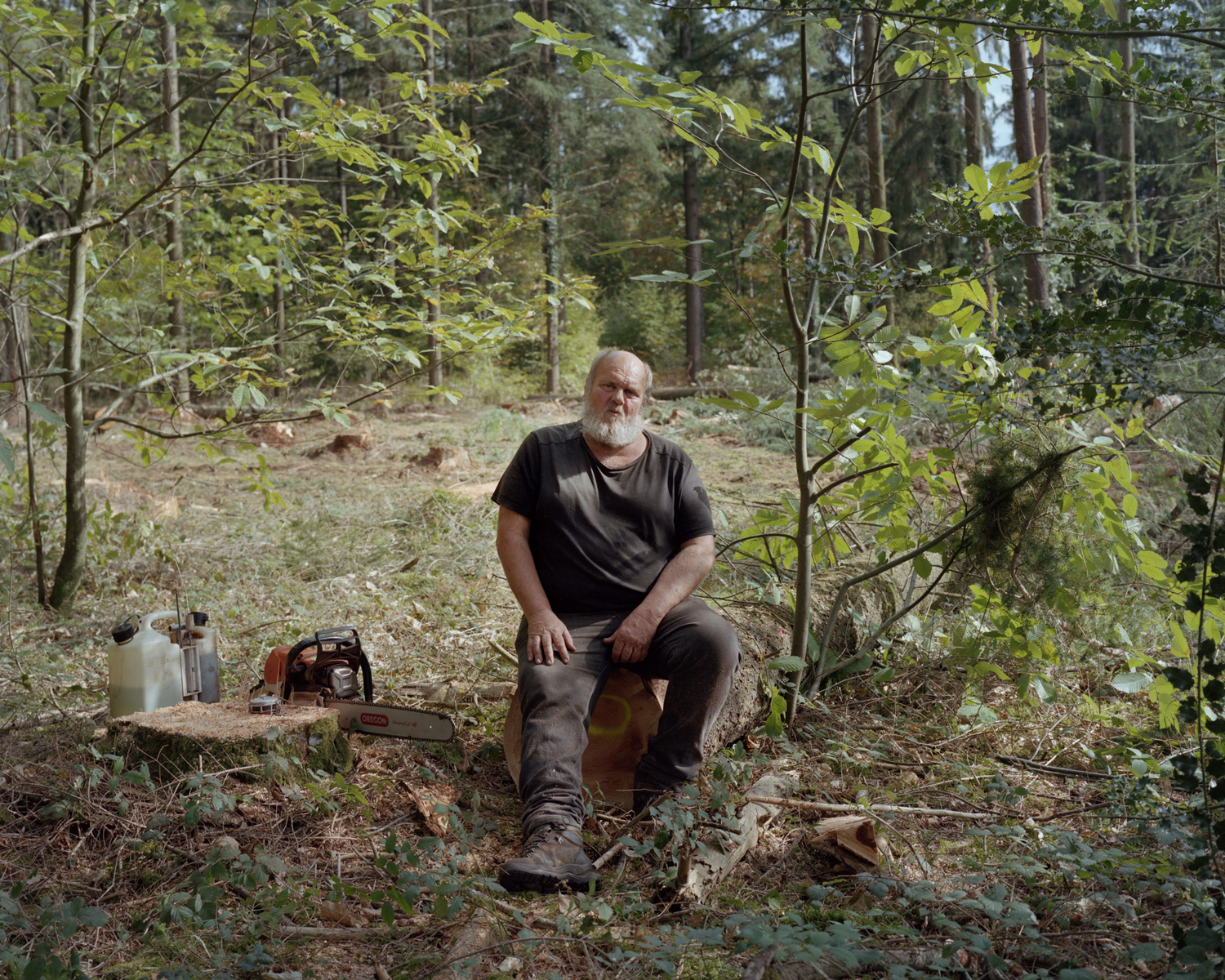 Seul dans les forêts creusoises depuis plusieurs dizaines d’années, Patrick Augras est un bûcheron « manuel, à la tronçonneuse ». Habitué du restaurant Le Victoria, à Saint-Vaury, le solitaire limousin a construit sa propre fuste, maison faite de bois. © Ambroise Tézenas / Grande commande photojournalisme