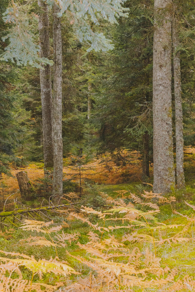 Forêt des Bois Noirs, Chemin de la Pierre des Fées, zone minière Les Bois Noirs, Saint-Priest-La-Prugne, Loire, mesure radioactivité 79 microSv/h, octobre 2022