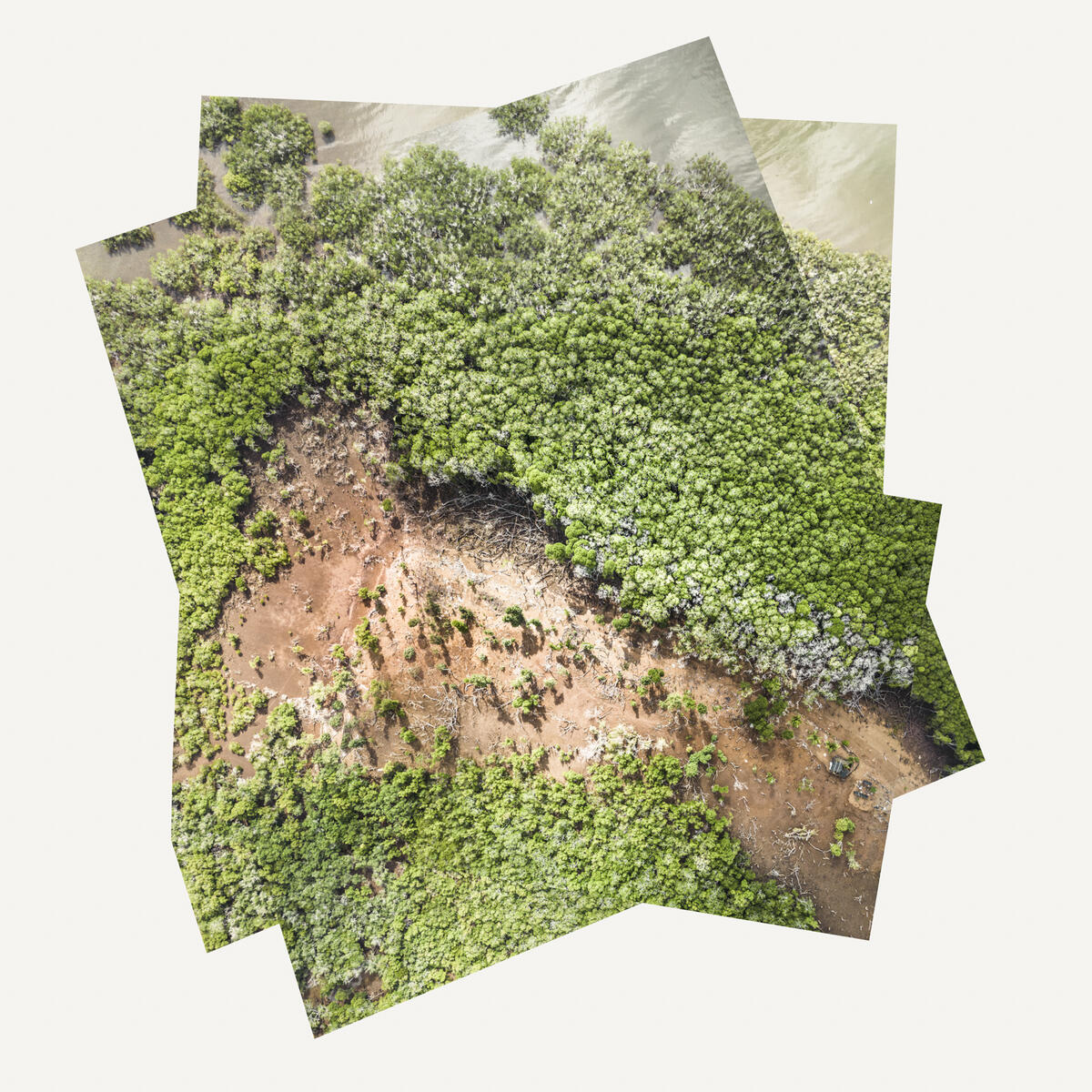Superpositions de vues aériennes. La mangrove de Bouyouni est partiellement anéantie par la main de l‘Homme en vue de réaliser clandestinement du charbon. La surface prélevée est plus grande qu'un stade de foot. © Franck Tomps / Grande commande photojournalisme