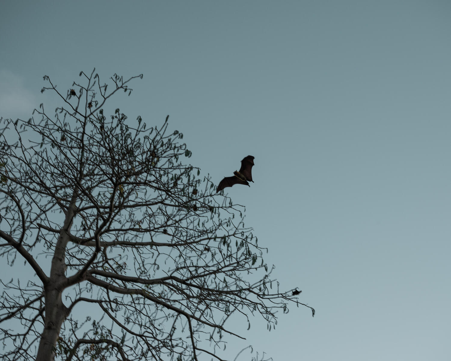 Grande chauve-souris pouvant atteindre 1,2 m d'envergure, la roussette est présente à Mayotte. Elle est exceptionnellement consommée par les populations les plus pauvres. Elle représente un réservoir à virus potentiellement transmissible aux humains. © Franck Tomps / Grande commande photojournalisme