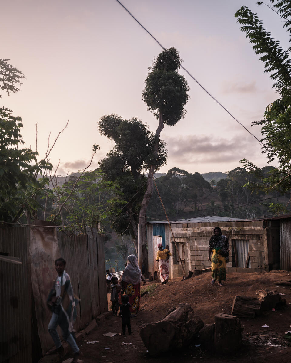Bidonville de Vahibé. A la tombée de la nuit, les villageois s'affairent. Les bidonvilles, très présents à Mayotte, accueillent une très forte densité de population. Les maisons qui les composent sont appelées "bangas". Elle sont faites de tôles et de bois. © Franck Tomps / Grande commande photojournalisme