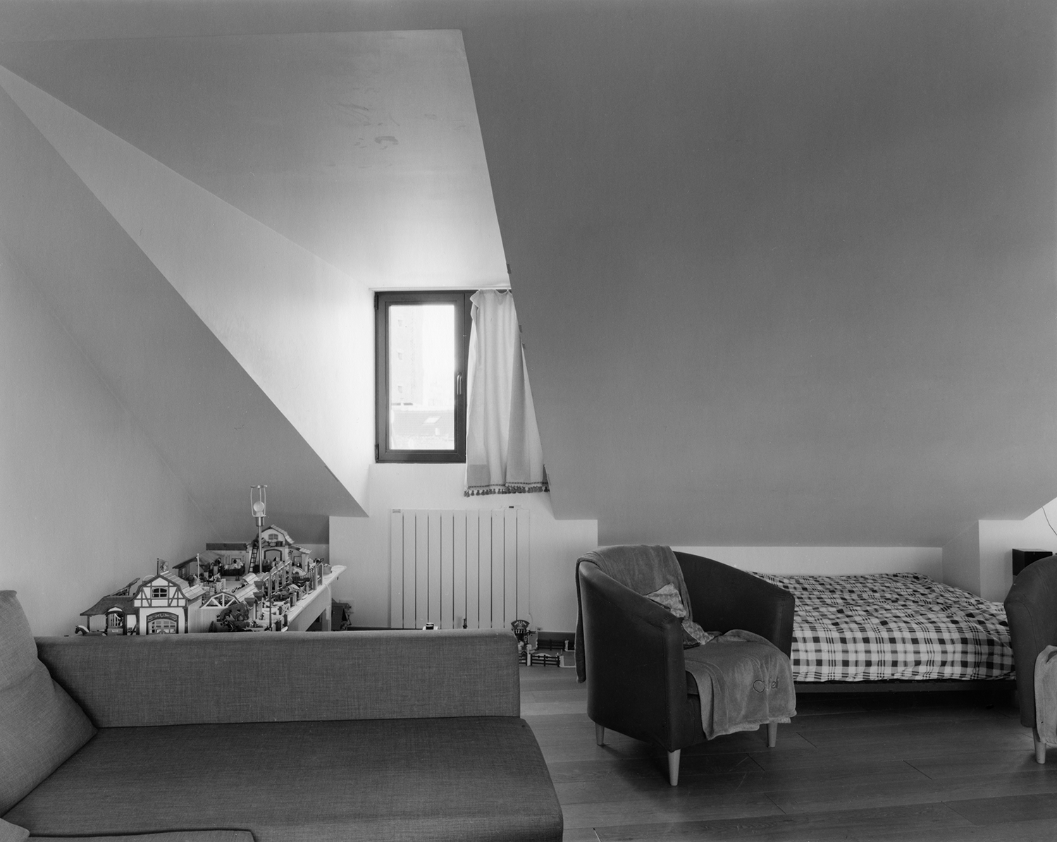 Chambre dans un salon, homme vivant seul avec enfant en garde alternée, appartement. © Thomas Boivin / Grande commande photojournalisme