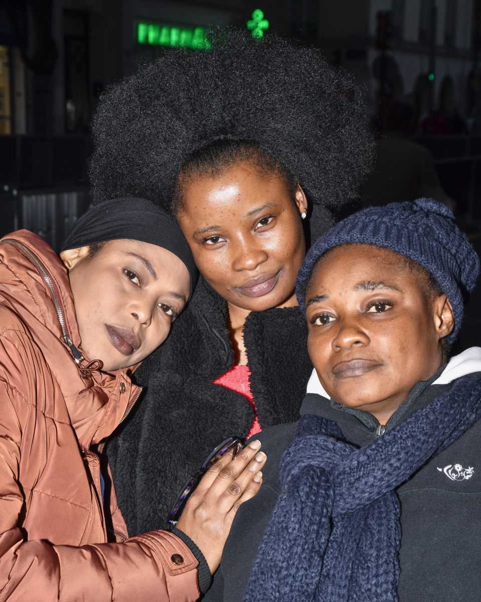 Komafine, Marie-Thérèse, et Desirée, rue Beaubourg, Paris. Elles sont de la Cote d’Ivoire. Marie-Thère vient d’obtenir son statut de réfugiée. Mafine et Desirée sont toujours en attente de passer à la Ofra.« Je m’appelle Konamifine, je suis originaire de la Côte d’Ivoire. Mon voyage a commencé avec le Maroc où j’ai passé deux semaines. Je suis arrivée ici par bateau. On n’avait pas de choix. Il fallait quitter le pays. Ma vie était en danger. On n’a pas les moyens pour prendre l’avion et je n’avais pas de visa…Je suis parti parce que mon mari a découvert mon homosexualité, dans mon téléphone. Il pensait que je le trompais avec un homme et il a découvert que je le trompais avec une femme. Et là il m’a frappé, il m’a cassé mes deux dents, il m’a frappé, j’ai cru que j’allais mourir. En Côte d’Ivoire, c’est à 13, 14 ans que j’ai commencé à vivre ma propre sexualité. En cachette. Maintenant tu vis comme les autres, tu as ton petit copain, ou bien, si tu n’as pas de petit copain, tu te maries, on te donne en mariage, tu fais des enfants, mais ce n’est pas ta vie, ce n’est pas ta vie, tu vis la vie d’une autre personne. Tu es obligée de suivre la ligne. On avait un réseau de copines là-bas. Mais il suffit d’être indexé par quelqu’un, et l’on peut se faire agresser en toute impunité ou se faire traiter d’« espèce de maudite ». Quand mon mari a découvert ma relation avec ma copine, je suis parti à Abidjan depuis ma ville de Korhogo, en allant me cacher chez un ami d’enfance. Je l’ai appelé, je lui ai expliqué ma situation et c’est lui qui a pris mon billet d’avion pour le Maroc. De mon côté, avec les économies que j’avais, j’ai pu payer les passeurs pour monter sur un bateau. Je suis arrivé en France le 20 août 2018. Lors de mon arrivée en France, je n’avais pas de famille proche ici. J’avais connu une fille au Maroc, on avait fait le voyage ensemble et c’est elle qui m’a hébergé chez son copain à mon arrivée… Après mon séjour auprès de cette copine, comme la maison était petite, je suis partie chez un tonton ivoirien, il connaissait bien ma famille mais il ne connaissait pas mon orientation sexuelle. Il m’a traité de tous les noms, il a essayé de coucher avec moi. Il m’a menacé de tout dire à mes parents. Au début, j’ai dû subir sa pression, après je suis partie. J’ai eu un petit boulot et j’ai pu m’échapper de chez lui. J’ai eu le statut de réfugié le 15 novembre 2022. Je n’ai plus le droit de rentrer chez moi, je ne peux plus repartir. Mes deux enfants sont restés là-bàs. Ils sont discriminés aujourd’hui, que ce soit dans la famille, à l’école ou dans le quartier, on les insulte, on leur dit qu’ils sont « maudits, comme votre maman », en Bambara, on dit « dangato ». © Nicola Lo Calzo / Grande commande photojournalisme