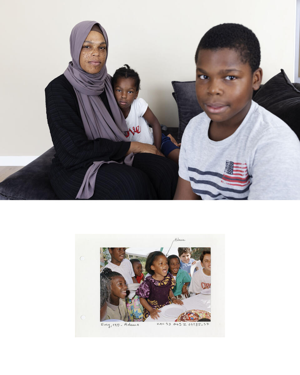 En haut : Corbeil-Essonnes, juillet 2022. Adama, 33 ans, fille d’Astan Keita avec deux de ses enfants, Hafsa, 4 ans et Imran, 9 ans. En bas : Évry-Courcouronnes, 1993. Adama, 4 ans, lors d’un anniversaire chez sa mère Astan. © Patrick Zachmann – Magnum Photos / Grande commande photojournalisme