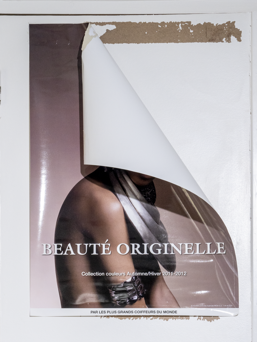 08/06/2022 Rennes, France Une affiche se décolle dans le salon de coiffure du centre pénitentiaire pour femmes de Rennes. © Mélanie Wenger / Grande commande photojournalisme