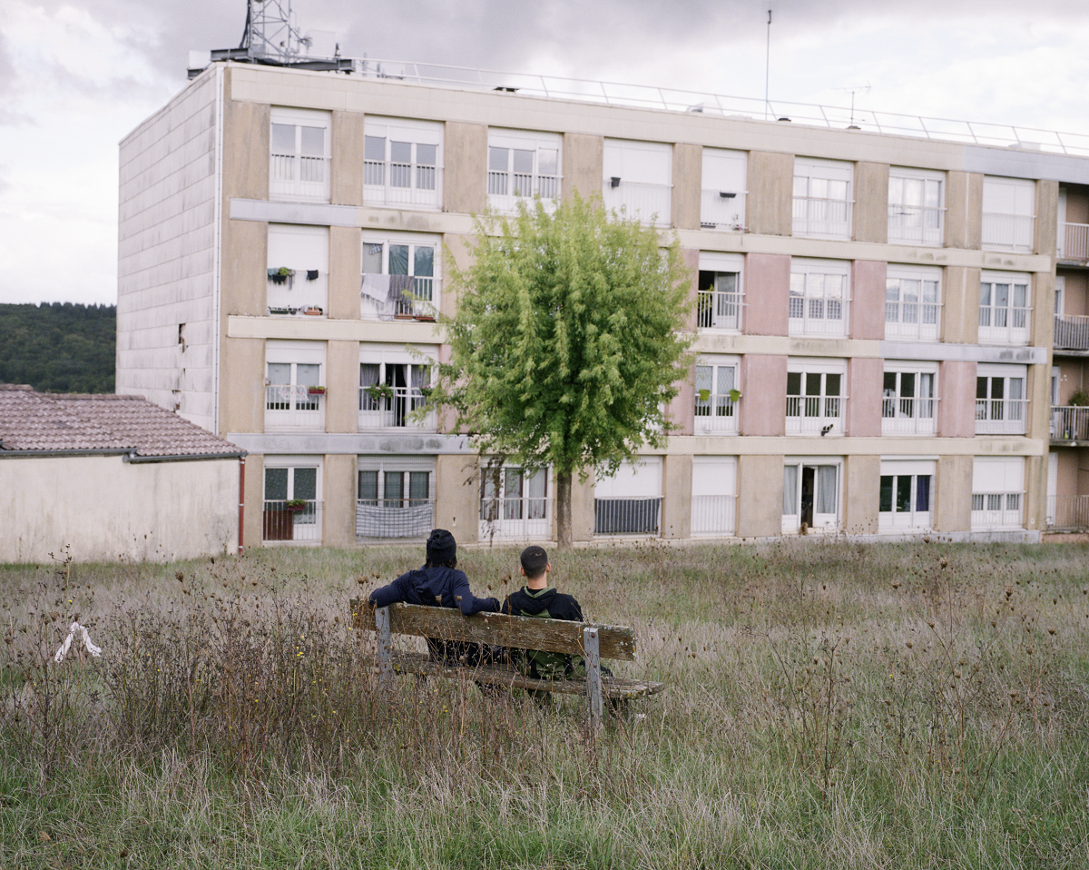 Loue et Ali, amis d'enfance, devant le bâtiment de la croix Robert dans lequel ils habitent. © Léo d’Oriano / Grande commande photojournalisme