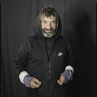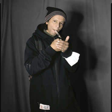 Le crack est une drogue à très haut rendement : un mélange de cocaïne, de bicarbonate de soude et d’eau, qui se fume dans de petites pipes en verre. C’est la drogue des miséreux, une substance qui attire la souffrance sociale et la précarité de notre époque. S’il est possible de se procurer une dose pour quelques euros, on peut gaspiller une fortune en en consommant à tout moment. Le crack détériore rapidement le corps, perturbe l’appétit et le sommeil et offre quelques instants de plaisir suivis d’une anxiété paranoïaque et du désir vorace et violent de s’en procurer davantage. Le portrait classique de ces usagers du crack, réalisé en studio à la chambre 8 × 10 inches, leur restitue un peu de dignité. Ce projet est soutenu par le Centre d’accueil et d’accompagnement à la réduction des usagers de drogue en région parisienne.